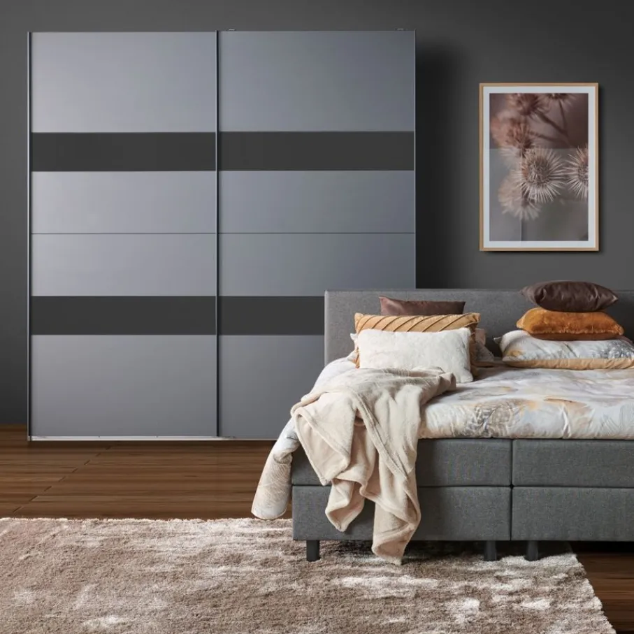 - Geef je slaapkamer een luxe en elegante uitstraling met de stijlvolle grafietkleur en mooie glazen accenten van kledingkast Mierlo.