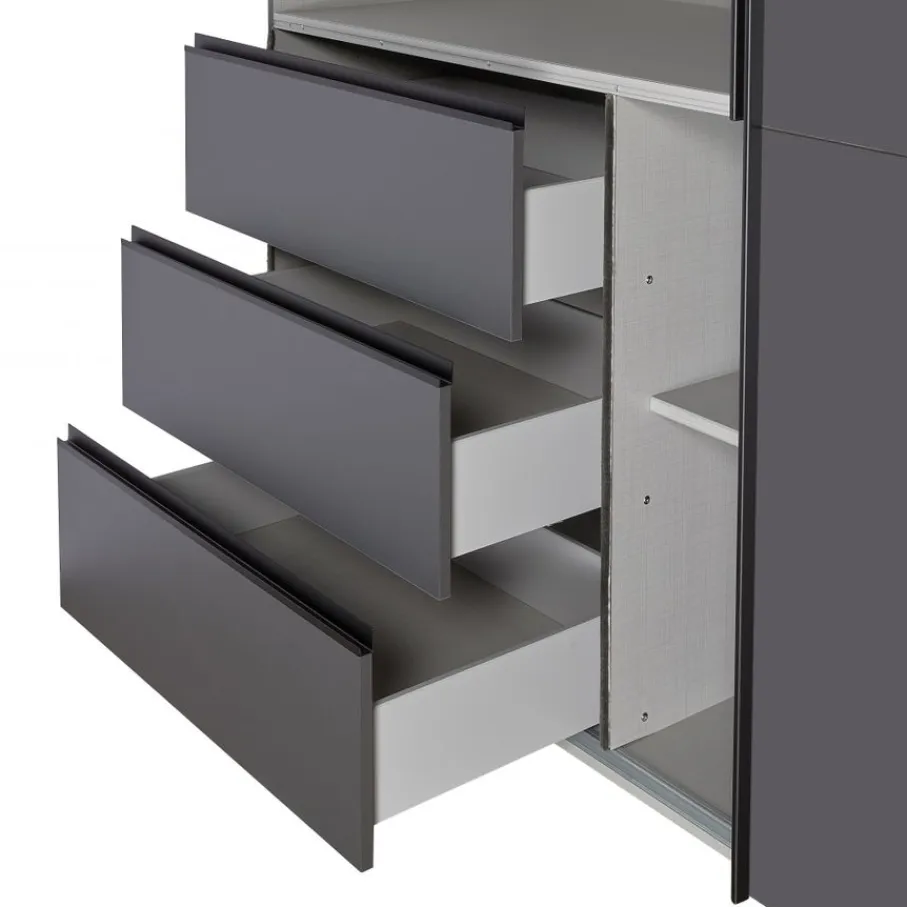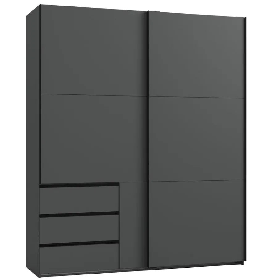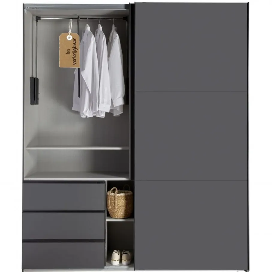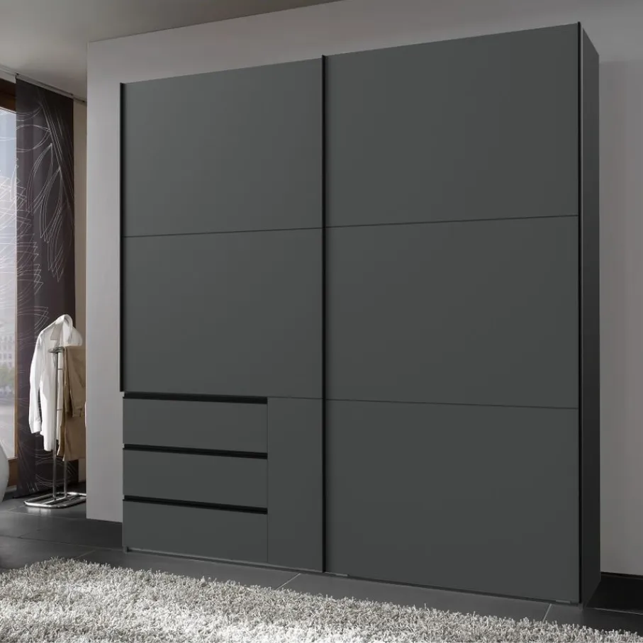 - Geef je slaapkamer direct een stijlvolle update met deze eigentijdse kledingkast in een trendy grafietgrijze kleur en strakke zwarte handgrepen.
