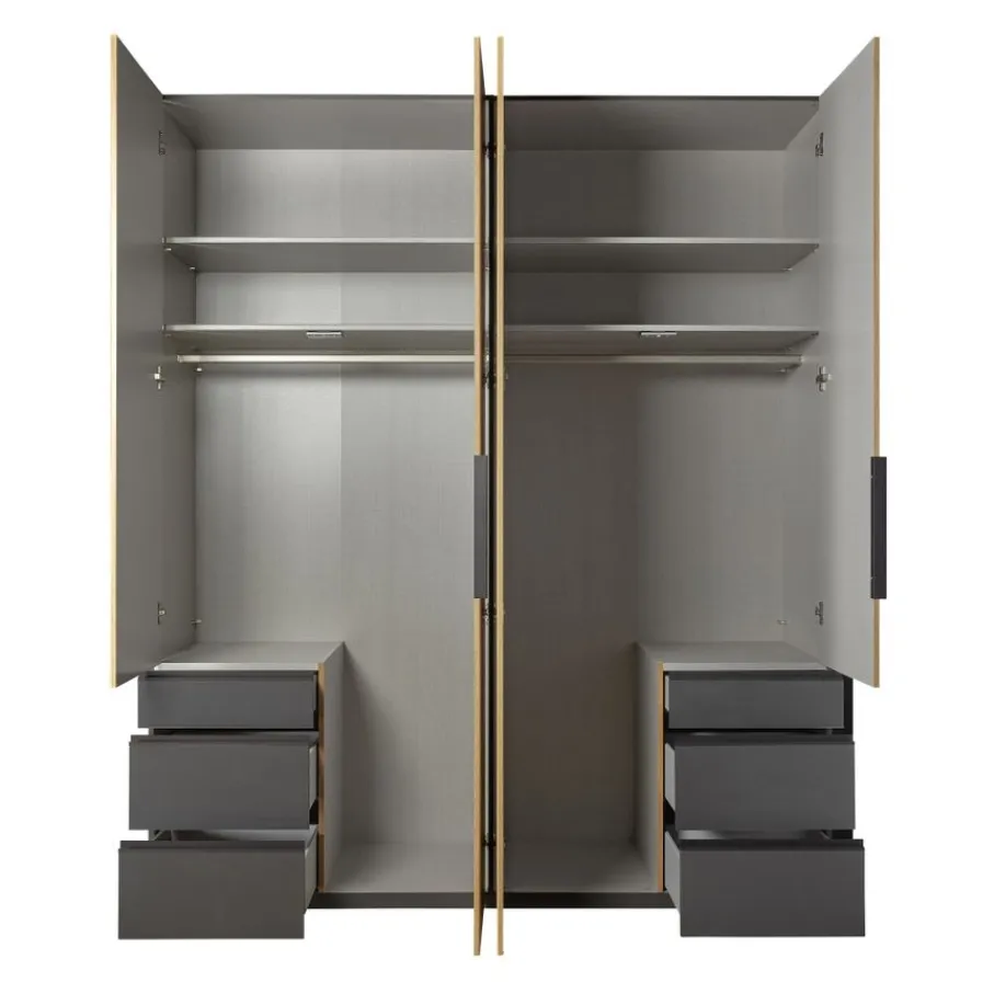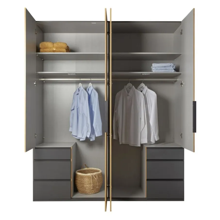 - Geniet van een zee aan georganiseerde opbergruimte met vier deuren, ruime hanggedeelten, legplanken én maar liefst zes lades.