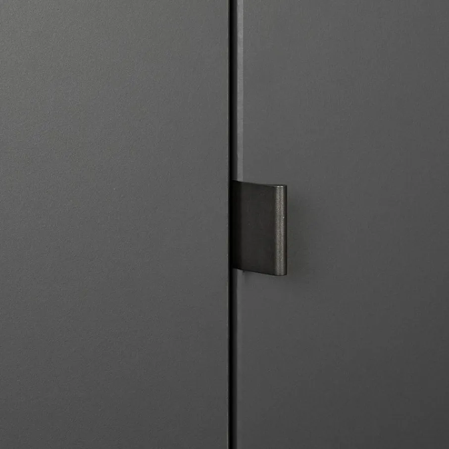 In het midden heeft kledingkast Stratum een breed kastelement met dubbele deuren. In dit brede gedeelte zitten standaard 2 planken. Onderin zitten 2 brede lades, ideaal voor sokken en ondergoed. Aan beide kanten van het brede element zit een smal kastelement. Beide smalle elementen zijn voorzien van een plank en een roede. Stratum wordt geleverd inclusief 2 brede planken, 2 smalle planken en 2 smalle roedes.