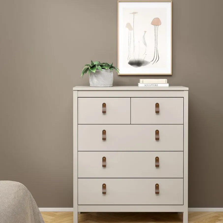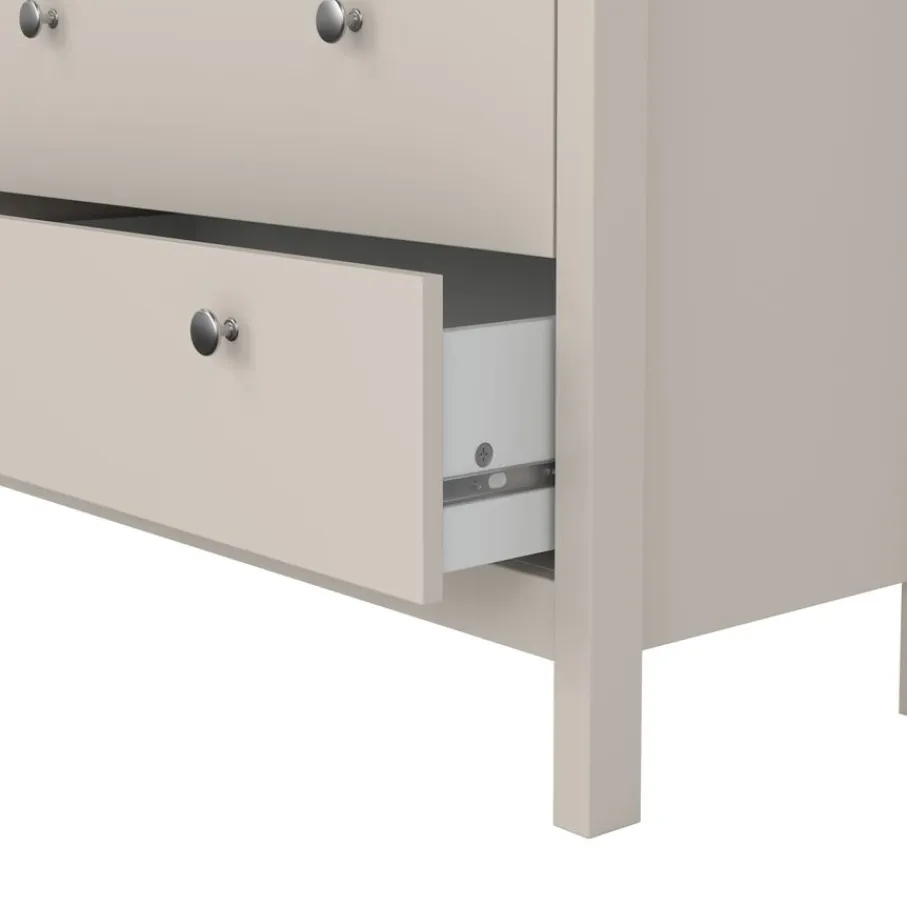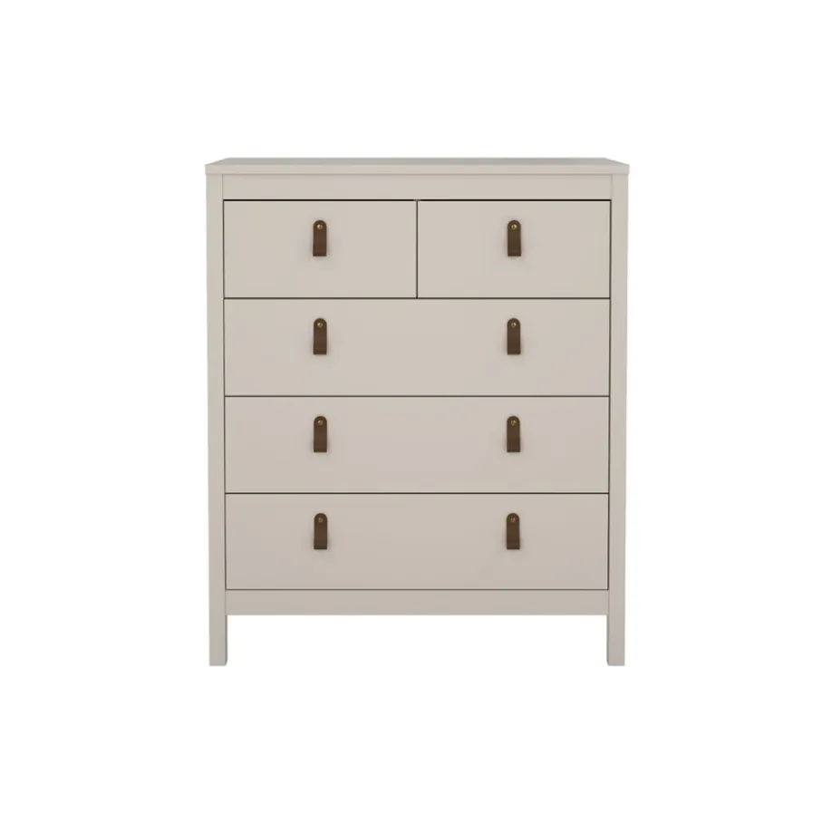 Ladekast Dallas beschikt over 5 lades en biedt daarmee lekker veel opbergruimte. Bovenin zitten 2 smalle lades en daaronder zijn 3 lades over de hele breedte van de kast.