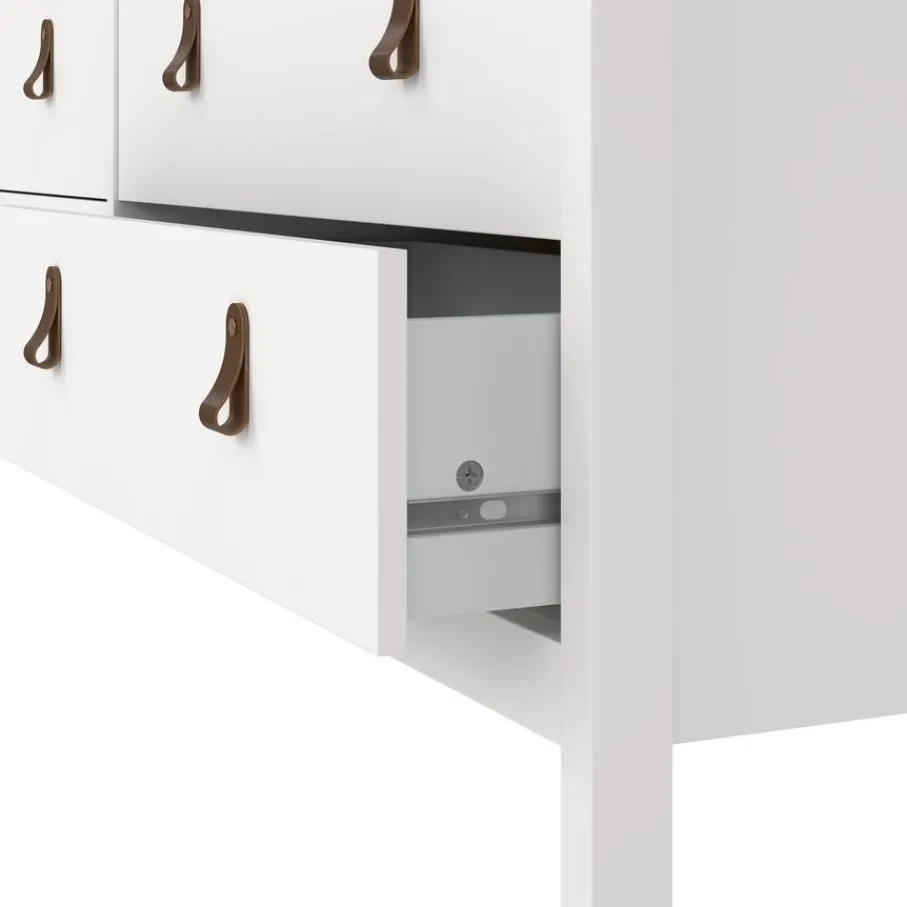 - De slimme mix van 4 smalle en 6 brede lades zorgt ervoor dat je alles, van kleine snuisterijen tot grotere items, moeiteloos een eigen plekje geeft.