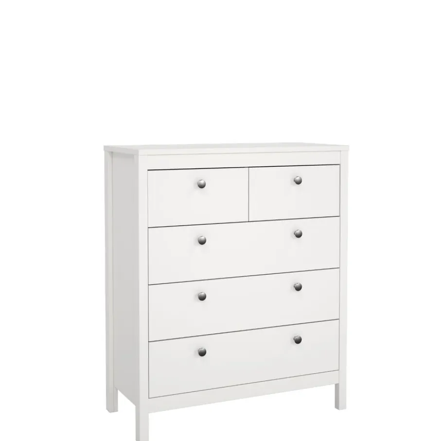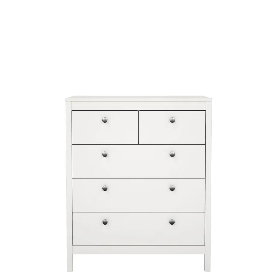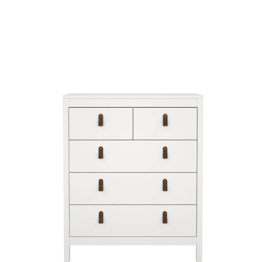 Ladekast Dallas beschikt over 5 lades en biedt daarmee lekker veel opbergruimte. Bovenin zitten 2 smalle lades en daaronder zijn 3 lades over de hele breedte van de kast.