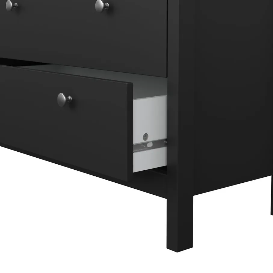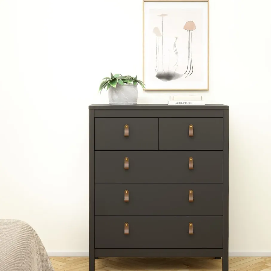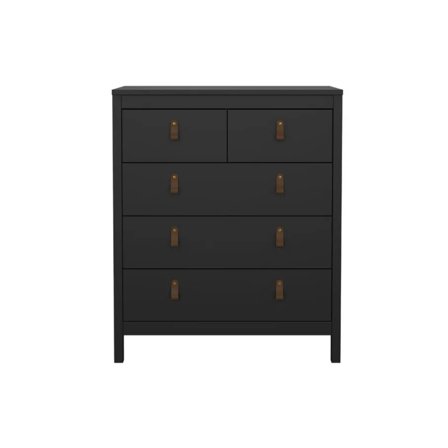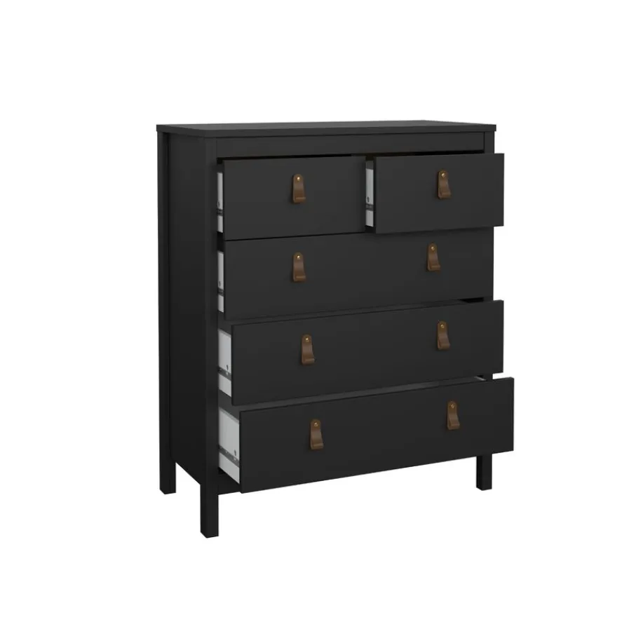 Ladekast Dallas beschikt over 5 lades en biedt daarmee lekker veel opbergruimte. Bovenin zitten 2 smalle lades en daaronder zijn 3 lades over de hele breedte van de kast.