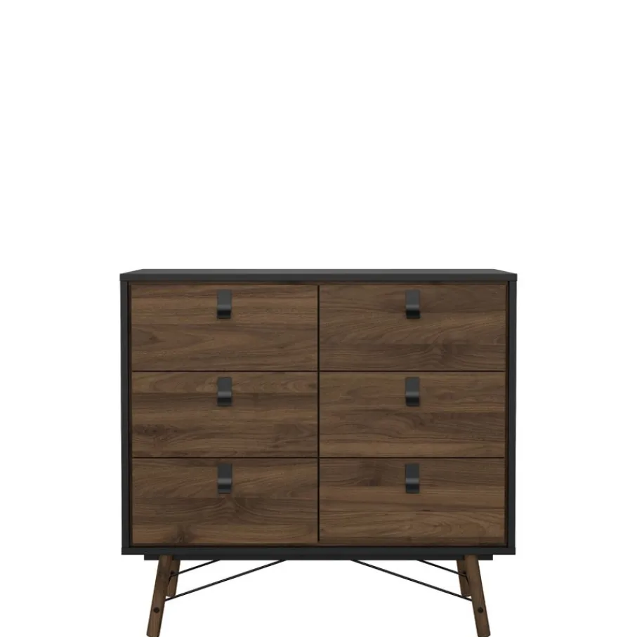 De Denver dubbele ladekast heeft zes lades met ruime opbergmogelijkheid en is ideaal voor kleine ruimtes. Met stalen kogellagers schuiven de lades moeiteloos open en dicht. De metalen handgrepen op de lades zorgen voor een speels accent.
