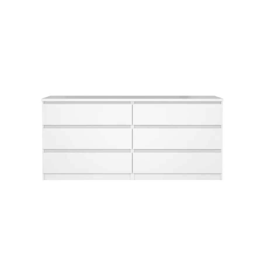 Deze ladekast heeft 6 ruime lades, perfect om van alles en nog wat netjes op te bergen. Ze hebben aan afmeting van 70×43 cm en zijn 12 cm diep. De greeploze lades lopen op metalen geleiders, zodat ze soepel openen en sluiten.