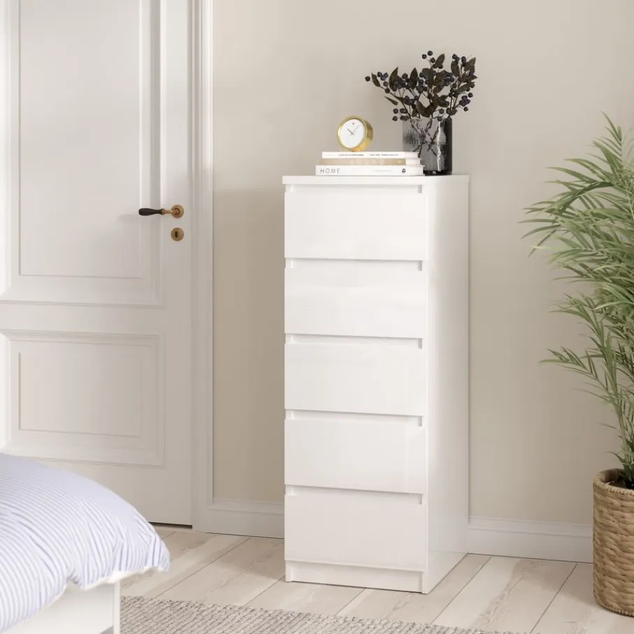 - Met zijn slanke maar hoge design (111.3 cm hoog en 40.4 cm breed) is deze ladekast verrassend veelzijdig, ideaal voor de slaapkamer, hal of waar je maar wilt.