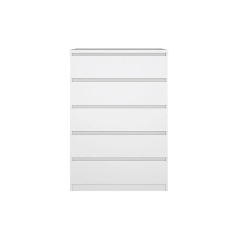 Deze ladekast heeft vijf ruime lades, perfect om van alles en nog wat netjes op te bergen. Ze hebben aan afmeting van 70×43 cm en zijn 12 cm diep. De greeploze lades lopen op metalen geleiders, zodat ze soepel openen en sluiten.