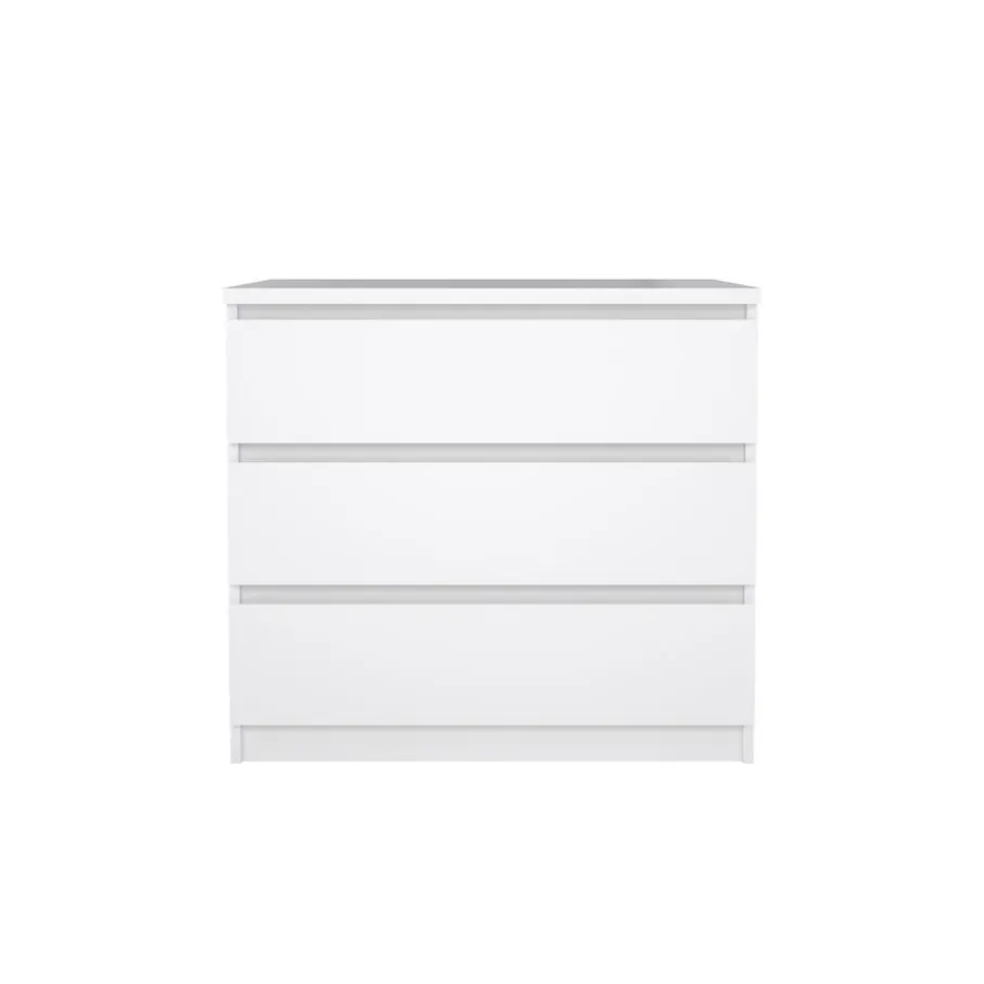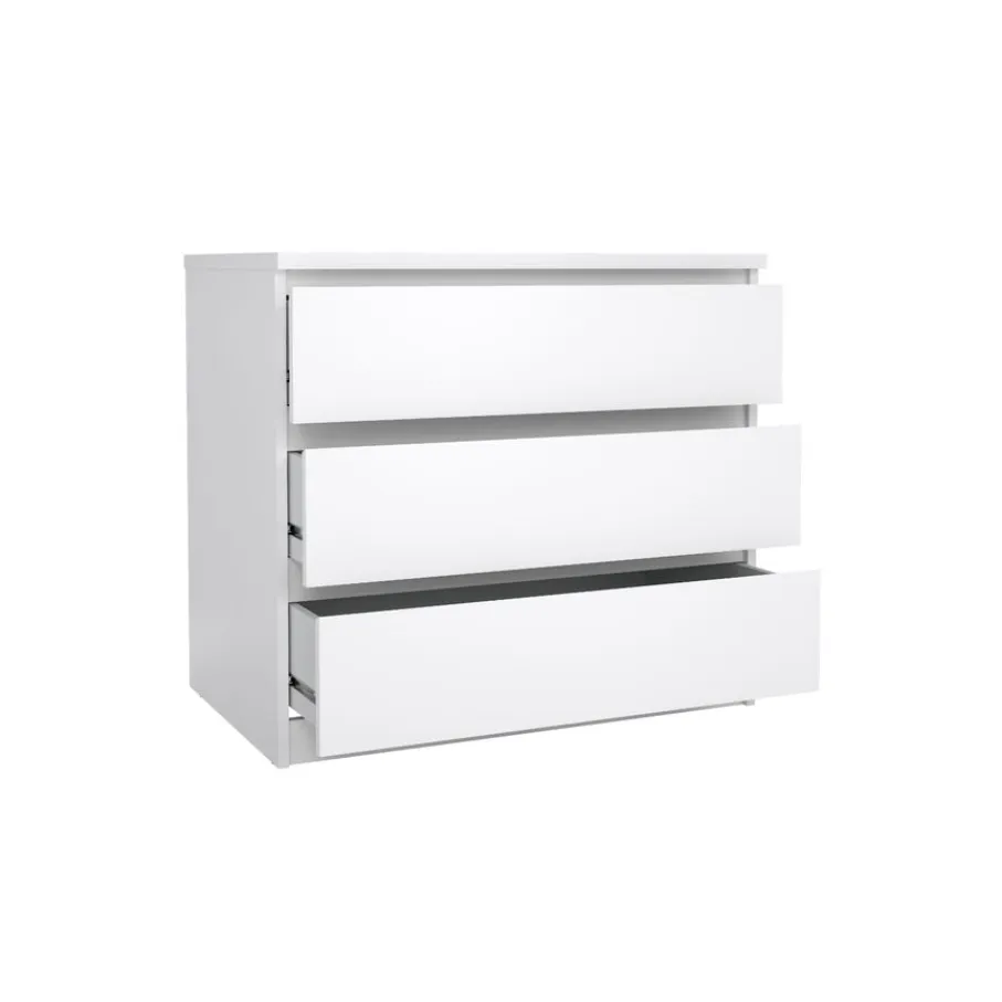 Deze ladekast heeft 3 ruime lades, perfect om van alles en nog wat netjes op te bergen. Ze hebben aan afmeting van 70×43 cm en zijn 12 cm diep. De greeploze lades lopen op metalen geleiders, zodat ze soepel openen en sluiten.