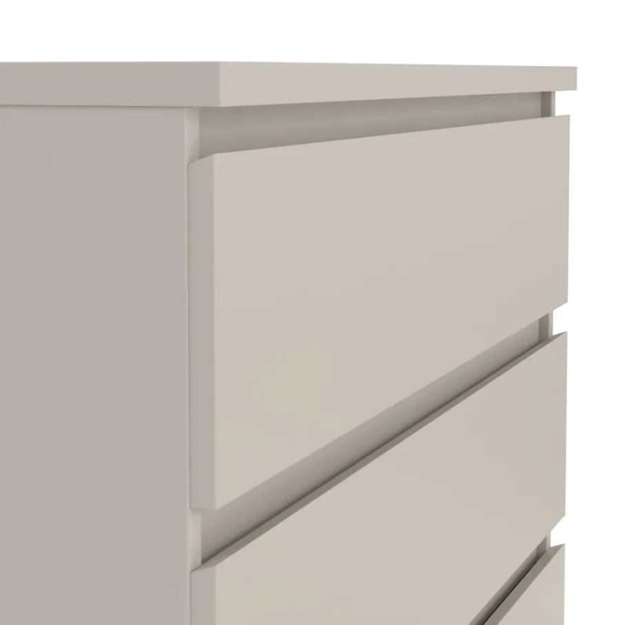 Deze ladekast heeft vijf ruime lades, perfect om van alles en nog wat netjes op te bergen. Ze hebben aan afmeting van 70×43 cm en zijn 12 cm diep. De greeploze lades lopen op metalen geleiders, zodat ze soepel openen en sluiten.