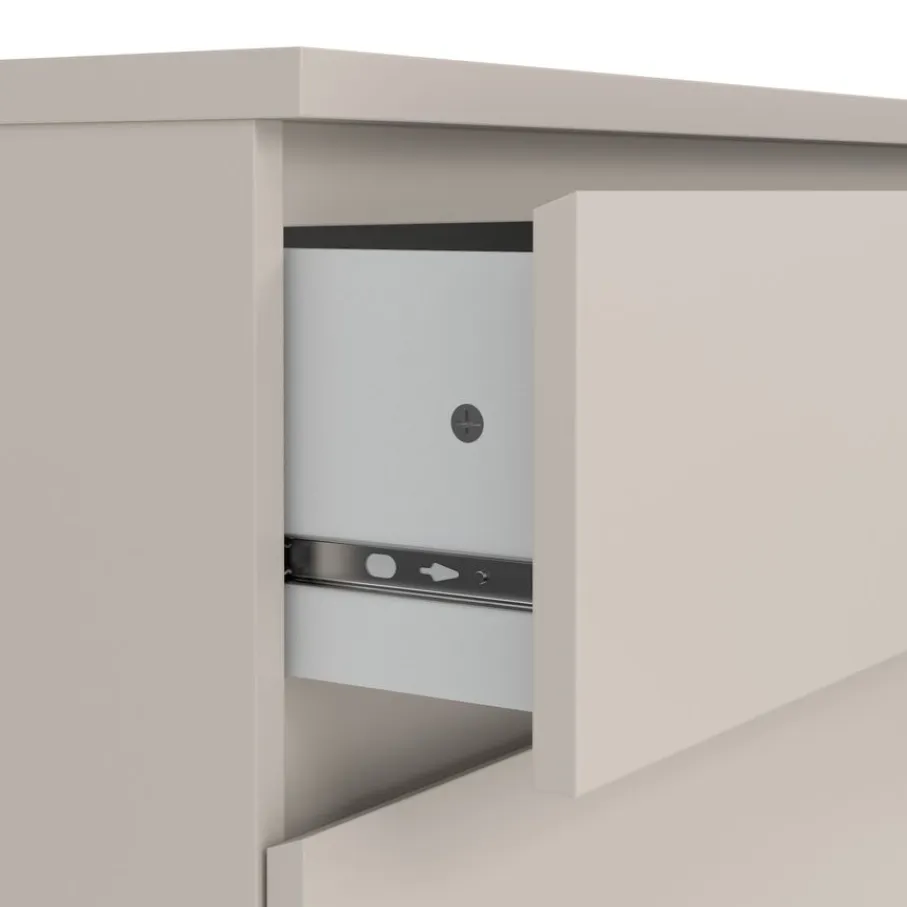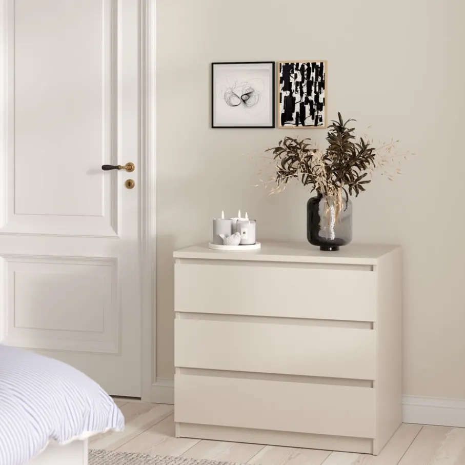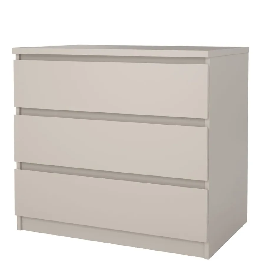 Deze ladekast heeft 3 ruime lades, perfect om van alles en nog wat netjes op te bergen. Ze hebben aan afmeting van 70×43 cm en zijn 12 cm diep. De greeploze lades lopen op metalen geleiders, zodat ze soepel openen en sluiten.