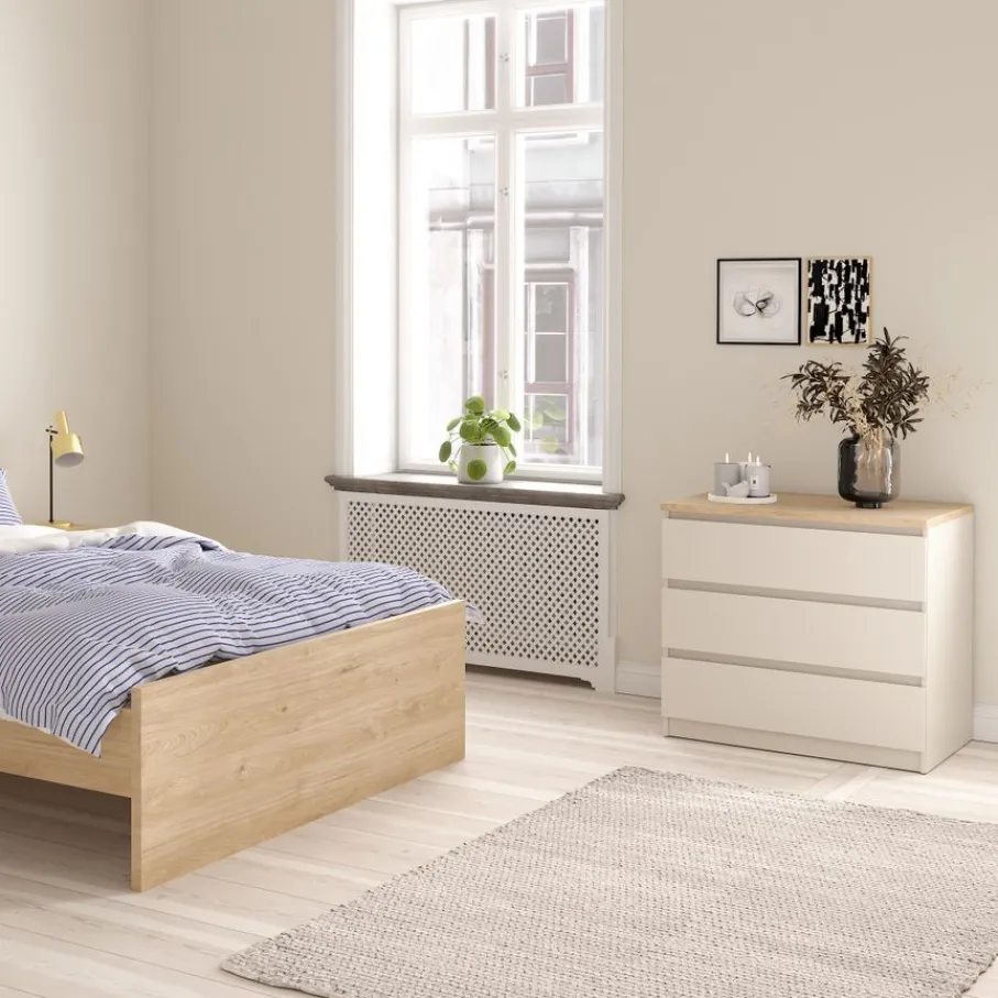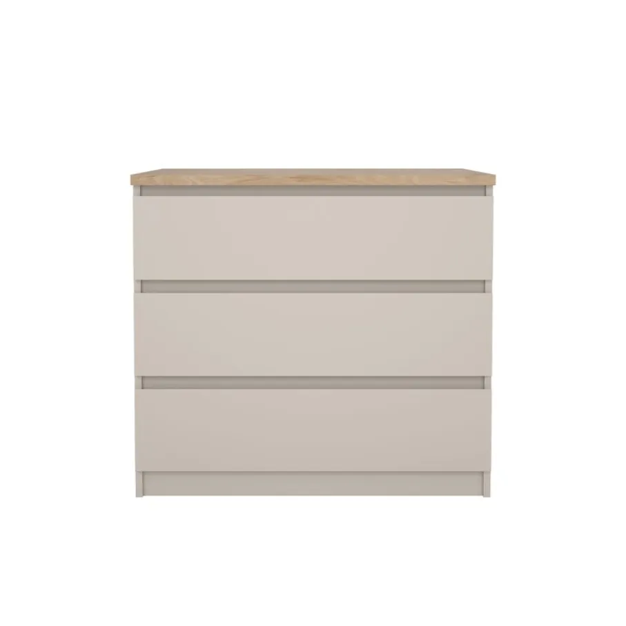 Deze ladekast heeft 3 ruime lades, perfect om van alles en nog wat netjes op te bergen. Ze hebben aan afmeting van 70×43 cm en zijn 12 cm diep. De greeploze lades lopen op metalen geleiders, zodat ze soepel openen en sluiten.