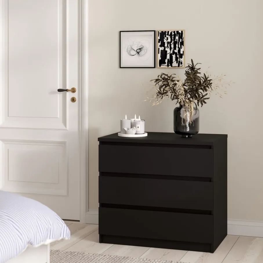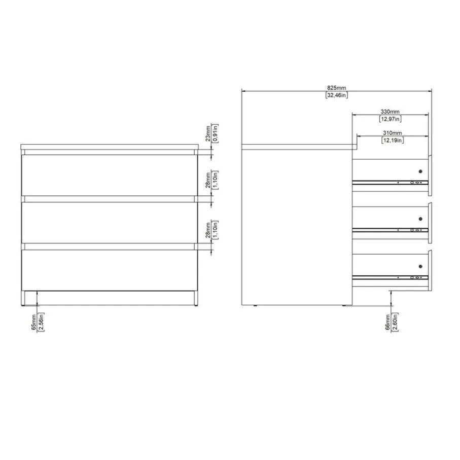 Deze ladekast heeft 3 ruime lades, perfect om van alles en nog wat netjes op te bergen. Ze hebben aan afmeting van 70×43 cm en zijn 12 cm diep. De greeploze lades lopen op metalen geleiders, zodat ze soepel openen en sluiten.
