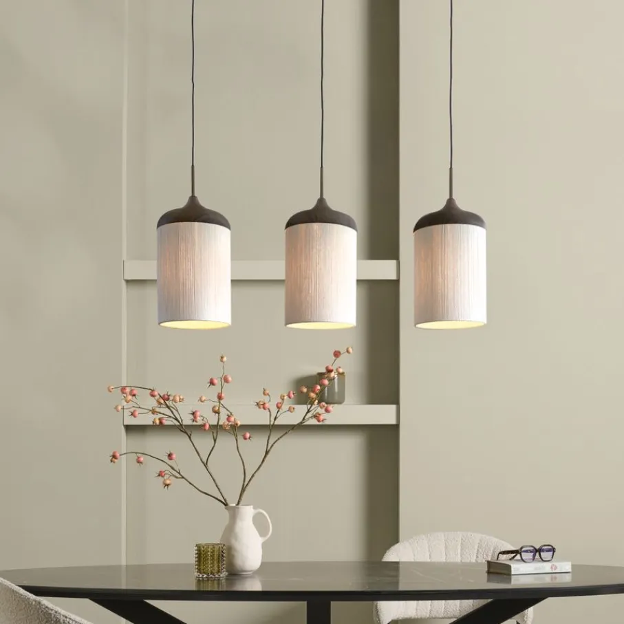 - Verlicht je eettafel of kookeiland perfect met de drie sfeervolle kappen, ideaal voor gezellige momenten.