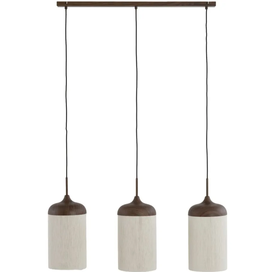 - Crèmekleurig touw en donkerbruine houtlook