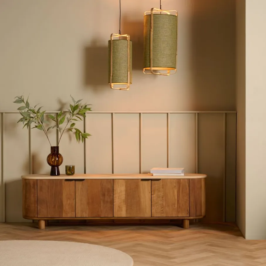 - Creëert direct een warme en gezellige sfeer in elke ruimte dankzij het natuurlijke jute en bamboe.