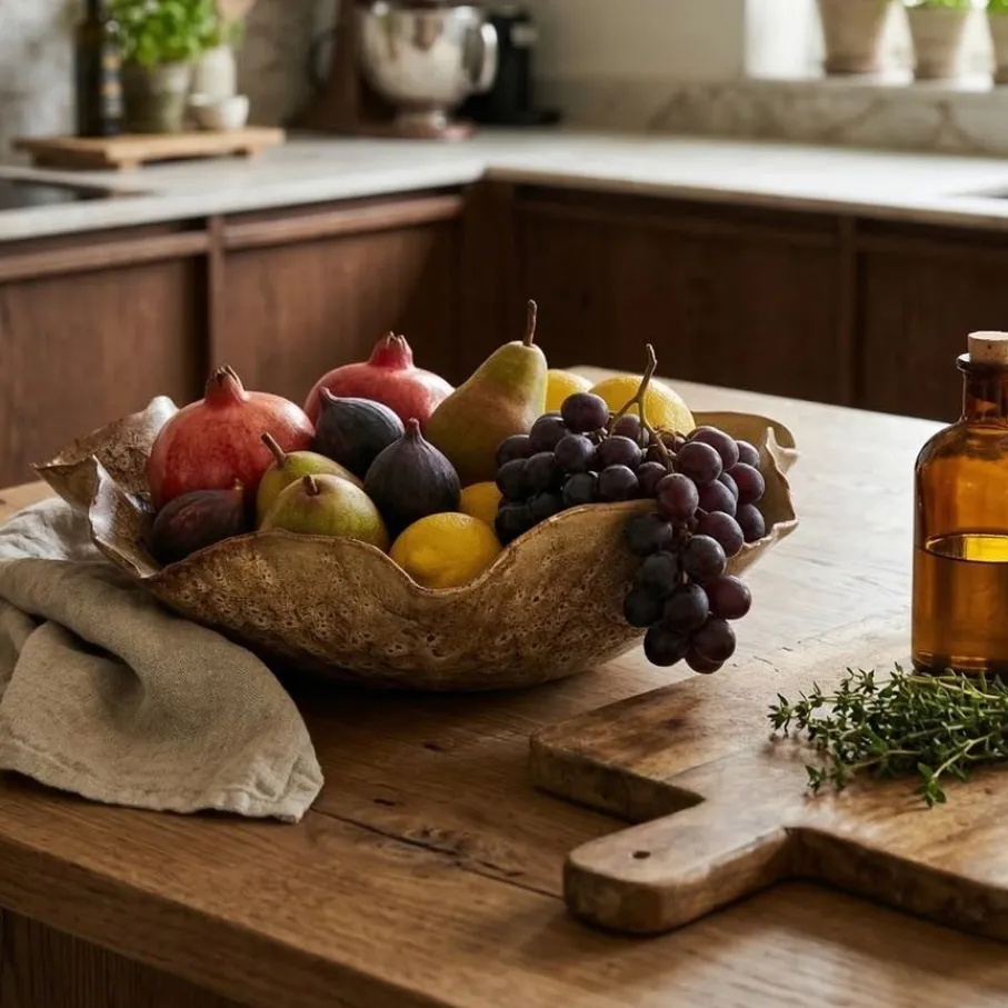 Met schaal Banda van interieurlabel Light & Living haal je direct een stukje natuur en warmte in huis. Deze prachtige schaal van keramiek, met subtiele organische vormen en bruine kleur, is een echte blikvanger. Vul ‘m met fruit, decoratieve ballen of gebruik ‘m als basis voor jouw unieke bloemdecoratie. Je creëert er in een handomdraai een sfeervol middelpunt mee voor op je salontafel of dressoir. Zo geef je met schaal Banda jouw interieur een gezellige en stijlvolle touch.