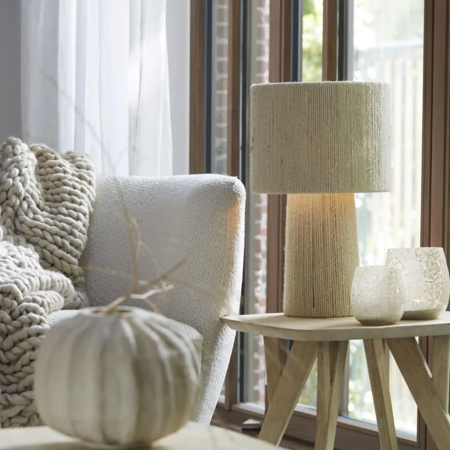 - Een unieke blikvanger: Met zijn trendy design van natuurlijk jute en strakke vorm is Tafellamp Pitino een echte eyecatcher die jouw interieur een boost geeft.