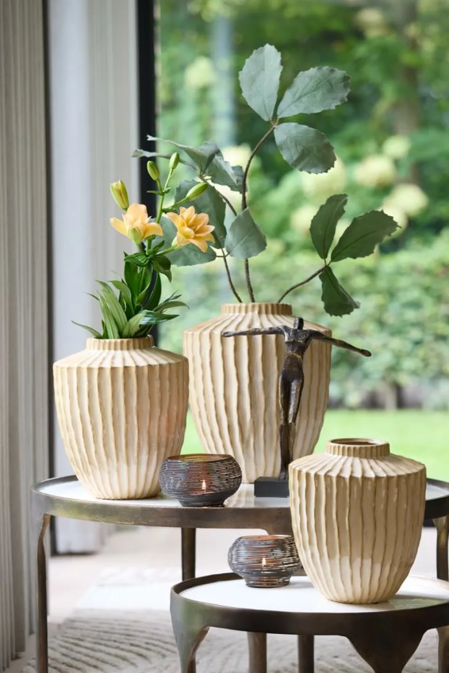 Vaas Talea van interieurlabel Light & Living brengt direct sfeer in je huis. Deze prachtige vaas, gemaakt van stevig keramiek, heeft warme lichte bruintinten en een parelmoer glans die schittert in elk licht. De geplooide look geeft er een modern accent aan. Zet er je favoriete bloemen in, een mooie tak of laat ‘m stralen als kunstwerk op zich. De Talea vaas is een echte blikvanger die jouw interieur net dat beetje extra gezelligheid geeft.