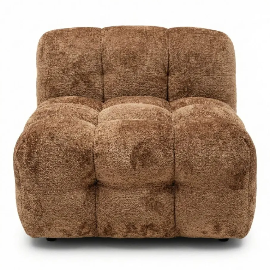 Geef je interieur een heerlijke upgrade met loveseat Gogoo, dé plek waar jij na een lange dag helemaal tot rust komt. De doorgestikte afwerking geeft een moderne design look aan de 1,5-Zitsbank. De stiksels zorgen voor een volumineus bubbel effect, dat perfect past in zowel een modern als retro getint interieur. De zachte chenille bekleding in rijke cognac kleur, maakt van Gogoo niet alleen een plek om te ontspannen, maar ook een absolute blikvanger in jouw interieur! TIP: Combineer deze loveseat bij 3-zitsbank Gogoo en maak er zo een hoekbank van. Je kunt het zitelement zowel aan de linker- als aan de rechterkant plaatsen. De verbinding om de loveseat aan de bank te koppelen is al aan de onderzijde bevestigd.