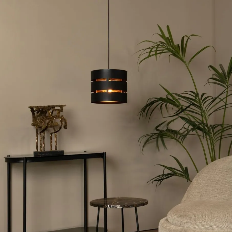 - Dompel je huis onder in een warme, sfeervolle gloed dankzij de unieke dubbellaagse kap met geperforeerd goudkleurig metaal.