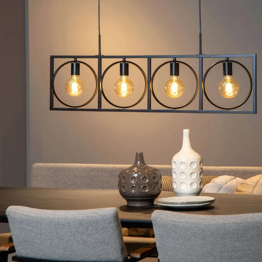 - Maak van jouw eethoek of keukeneiland een ware blikvanger met deze indrukwekkende hanglamp met open, geometrische vormen.