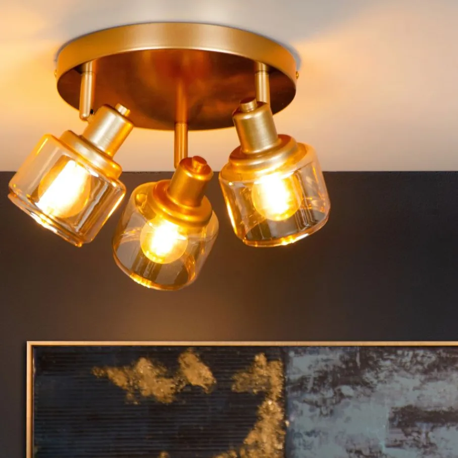 - Geniet van een chique uitstraling dankzij de prachtige mat gouden/messing afwerking en de elegante gouden glazen lampenkappen.