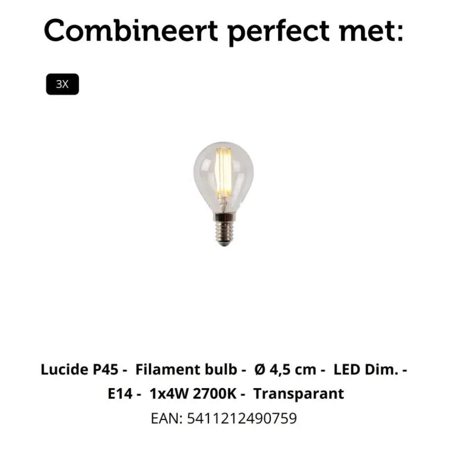 - De benodigde lichtbronnen (3x E14) zijn niet inbegrepen, maar zo kies je wel zelf de perfecte lichttint die bij jouw sfeer past.