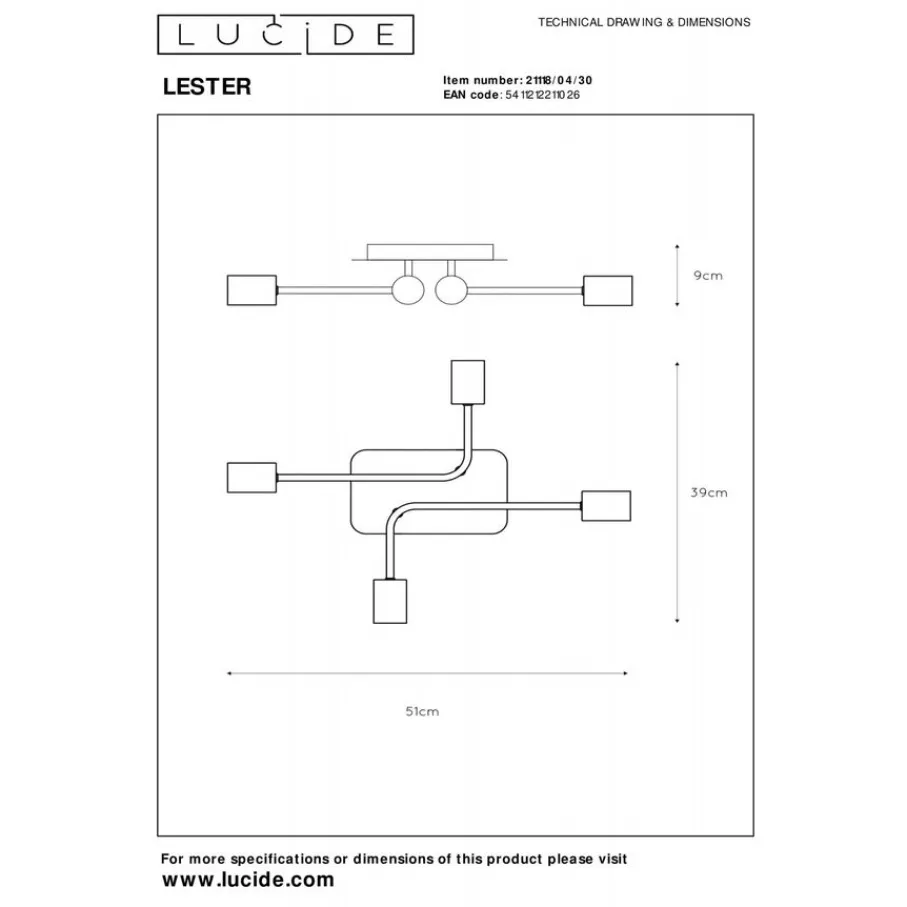 - Biedt volop de ruimte om te spelen met licht, want de 4 E27 fittingen laten je zelf de perfecte lichtbron kiezen voor de gewenste sfeer.