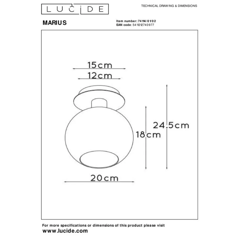 - Met zijn compacte formaat (Ø20 cm) is deze plafonnière een subtiele toevoeging, wat betekent dat je er misschien meerdere nodig hebt om een hele grote ruimte optimaal te verlichten.