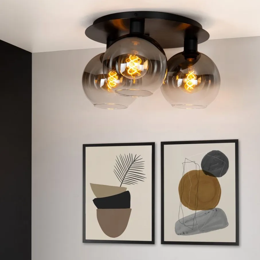 - Stijlvolle plafondlamp met fumé glazen bollen