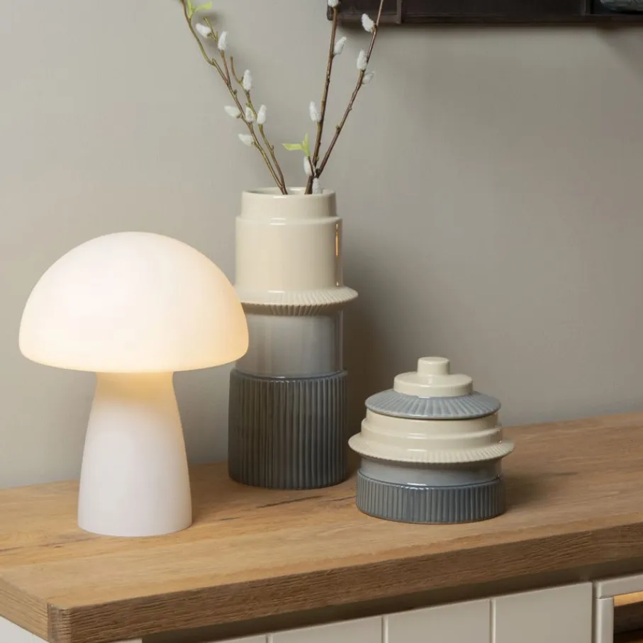- Een stijlvolle blikvanger: Met zijn elegante en unieke ‘Fungo’ design van opaal glas geeft deze lamp direct een moderne én tijdloze touch aan je interieur.