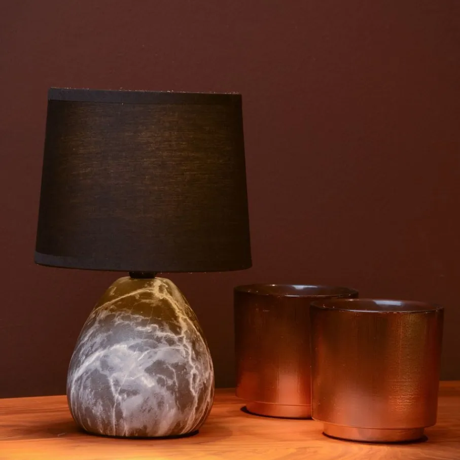 - Een stijlvolle blikvanger: De prachtige keramieken bolvoet met marmerlook en de klassieke zwarte kap geven jouw interieur direct een luxe en tijdloze uitstraling.