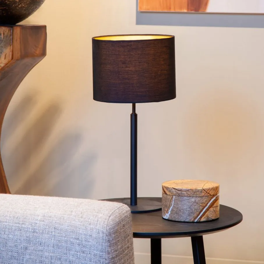 - Stijlvol en tijdloos design: Met zijn elegante zwarte metalen voet en ronde katoenen kap past deze lamp perfect in elk modern of eigentijds interieur.