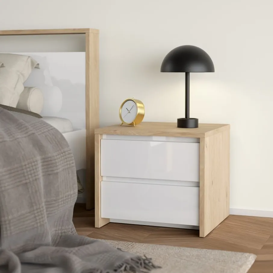 - Houd al je avondessentials netjes uit het zicht in de twee ruime lades, zodat je slaapkamer altijd opgeruimd en kalm oogt.