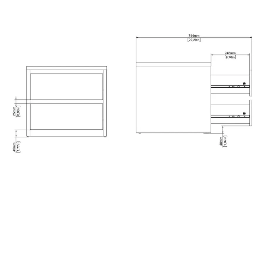Deze nachtkast heeft twee brede lades van 16,7 cm hoog en 38,6 cm diep. Perfect om van alles en nog wat in op te bergen. Bovendien zijn de lades greeploos waardoor een rustige en moderne look ontstaat.