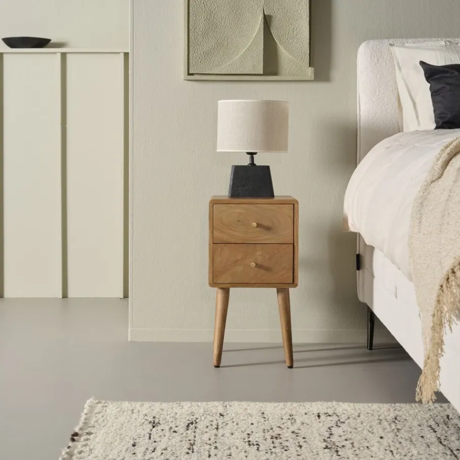 Het Borba nachtkastje is subtiel qua afmetingen, maar groot in functionaliteit. Met 2 lades biedt het handige opbergruimte voor al je nachtrust-essentials.