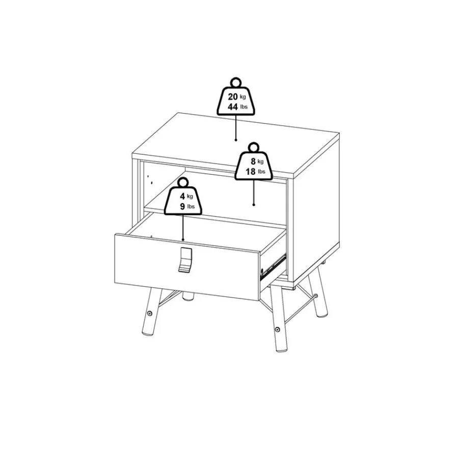 - Houd je essentials binnen handbereik dankzij de handige lade en het open vak, ideaal voor je boek, wekker of favoriete decoratie.