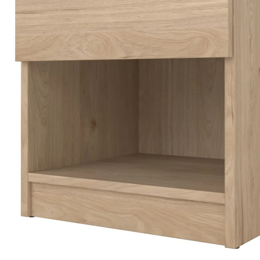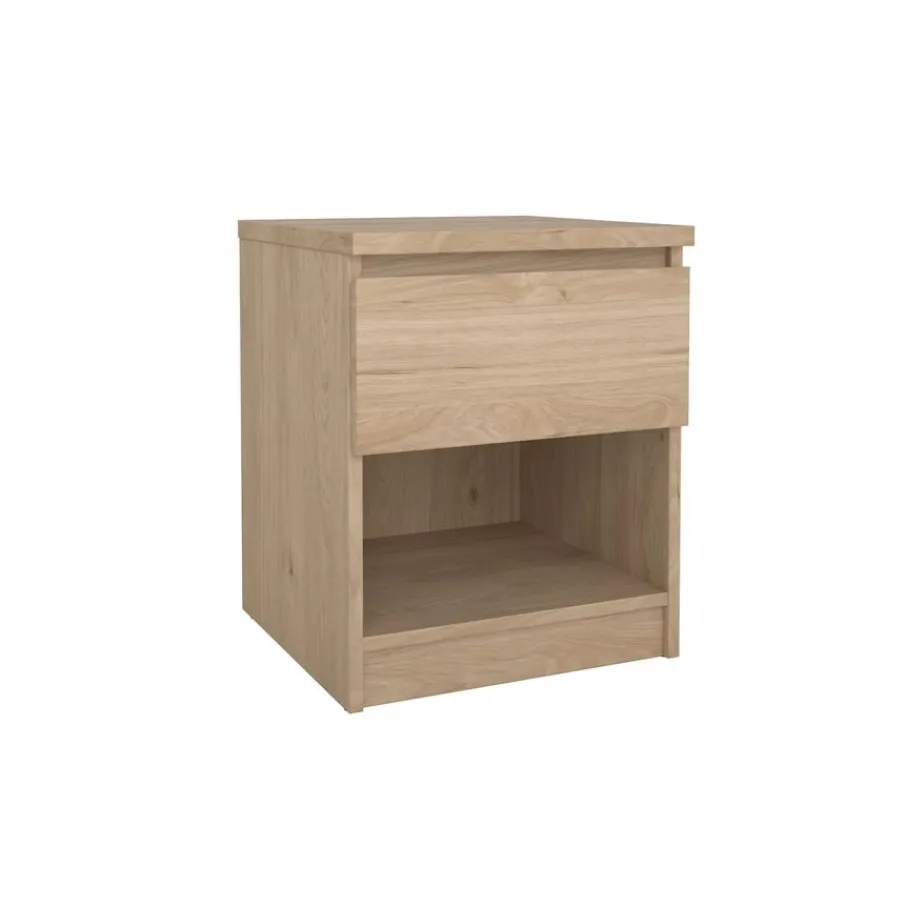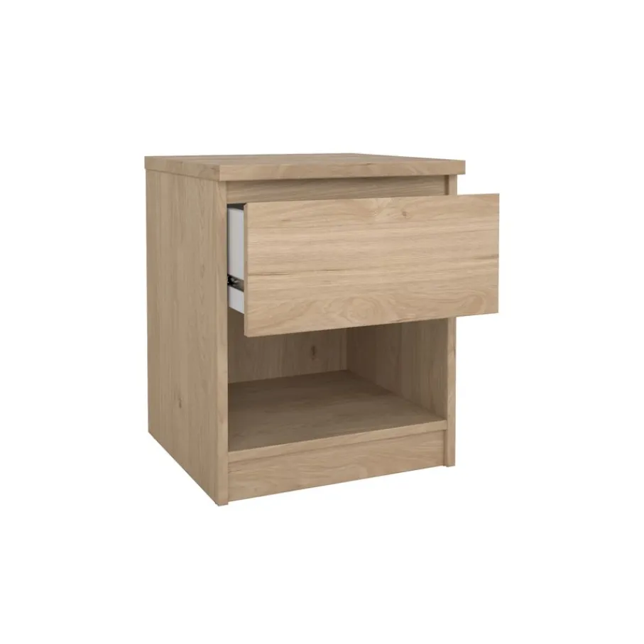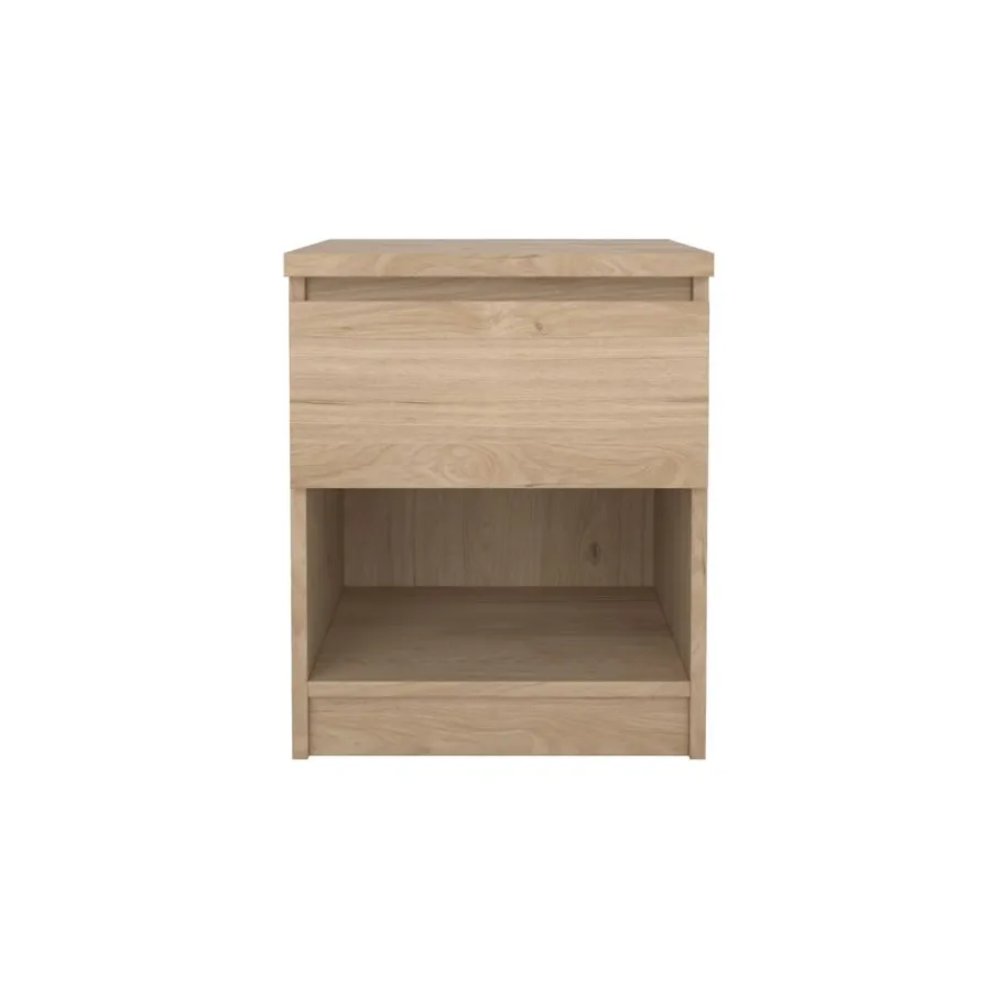 Met een compact formaat en praktische opbergmogelijkheden past nachtkastje Luna moeiteloos naast elk bed. Dit kastje combineert een handige lade met een open vak. De lade opent soepel door de kogel gelagerde geleiders en het open gedeelte is perfect voor je favoriete boeken of accessoires.