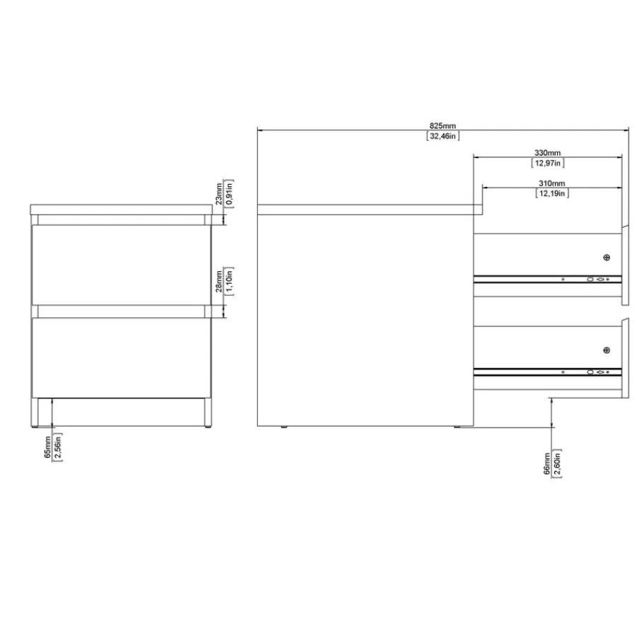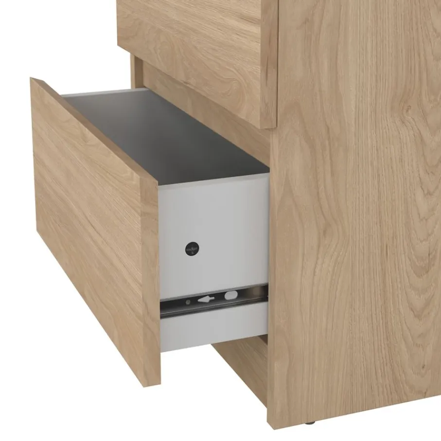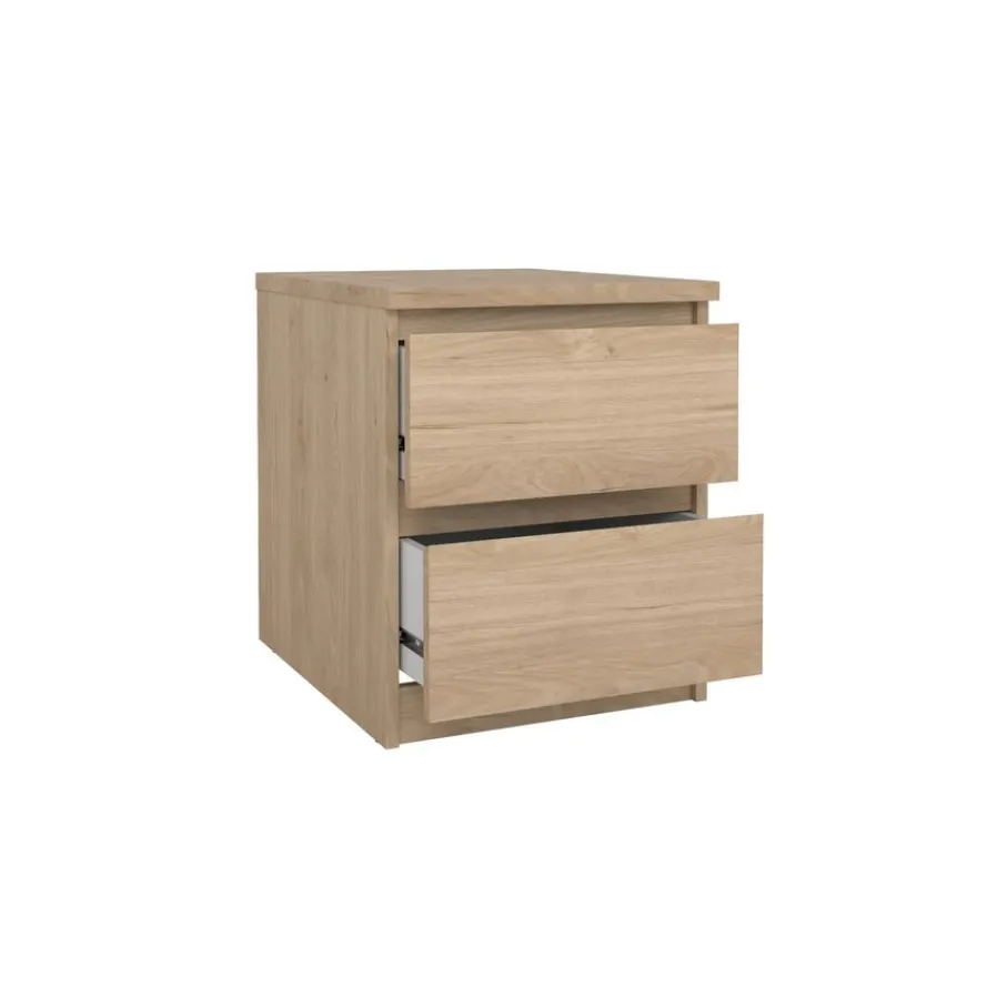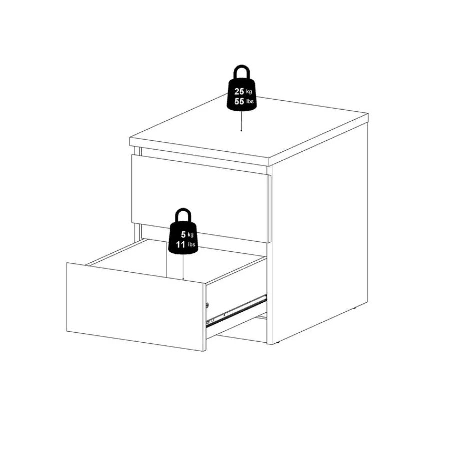 Met een compact formaat en praktische opbergmogelijkheden past nachtkastje Luna moeiteloos naast elk bed. Dit kastje heeft twee handige lades, deze openen soepel door de kogel gelagerde geleiders.