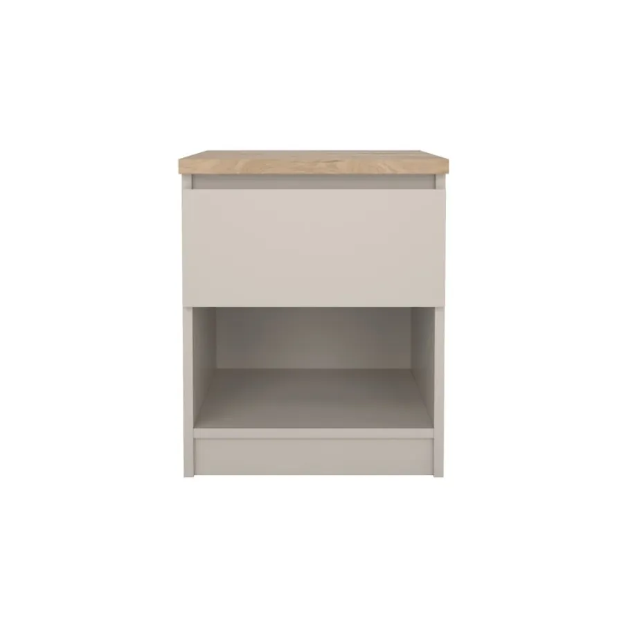 Met een compact formaat en praktische opbergmogelijkheden past nachtkastje Luna moeiteloos naast elk bed. Dit kastje combineert een handige lade met een open vak. De lade opent soepel door de kogel gelagerde geleiders en het open gedeelte is perfect voor je favoriete boeken of accessoires.