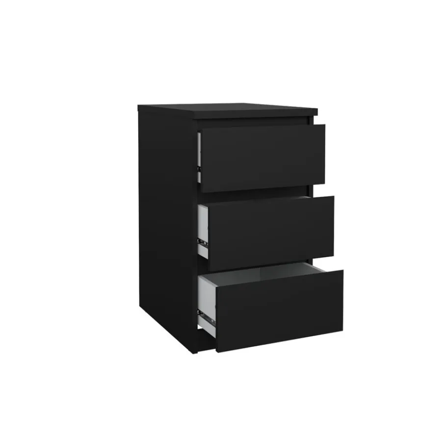 Dit nachtkastje heeft 3 lades, perfect om van alles en nog wat netjes op te bergen. Ze hebben aan afmeting van 34×43 cm en zijn 12 cm diep. De greeploze lades lopen op metalen geleiders, zodat ze soepel openen en sluiten.