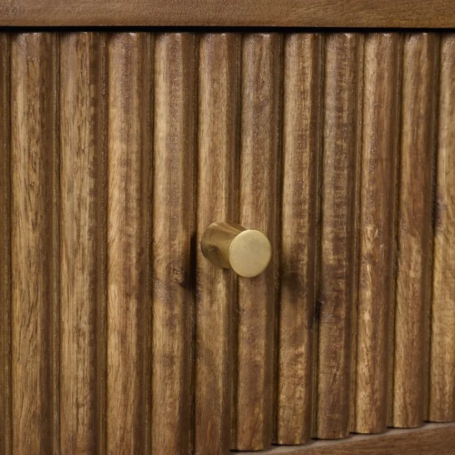 - De verfijnde afwerking met verticale lijnen op de lades en chique messing knopjes geeft een extra luxe touch.