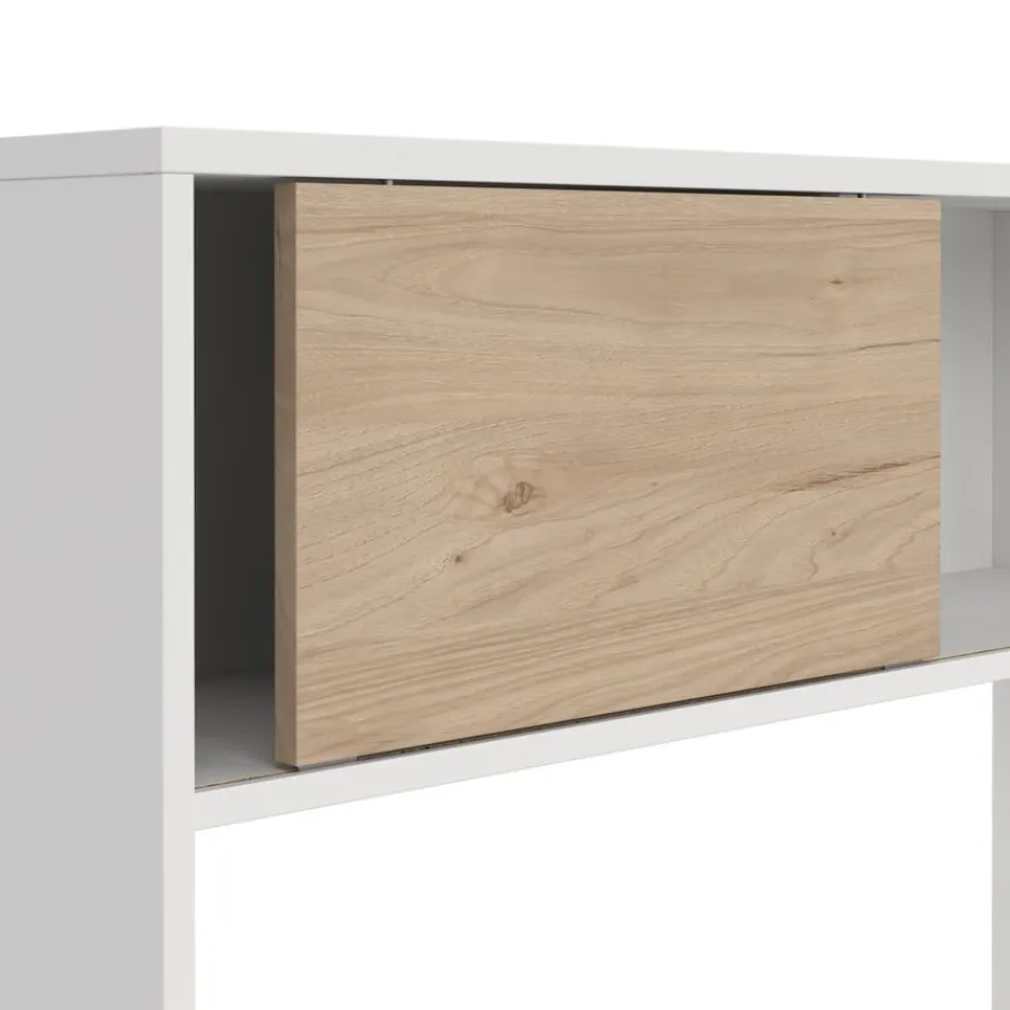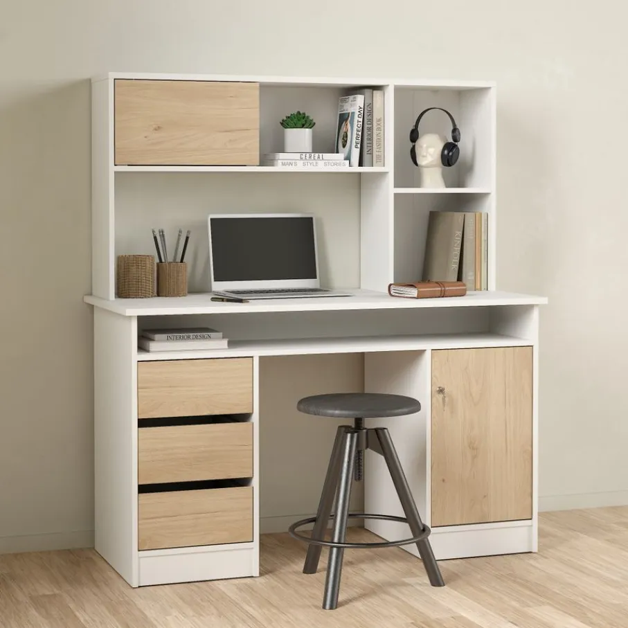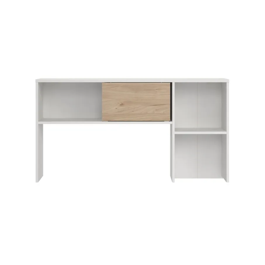 - Geef je werkplek een stijlvolle én functionele upgrade met deze moderne opzetkast die naadloos aansluit bij een opgeruimd interieur.