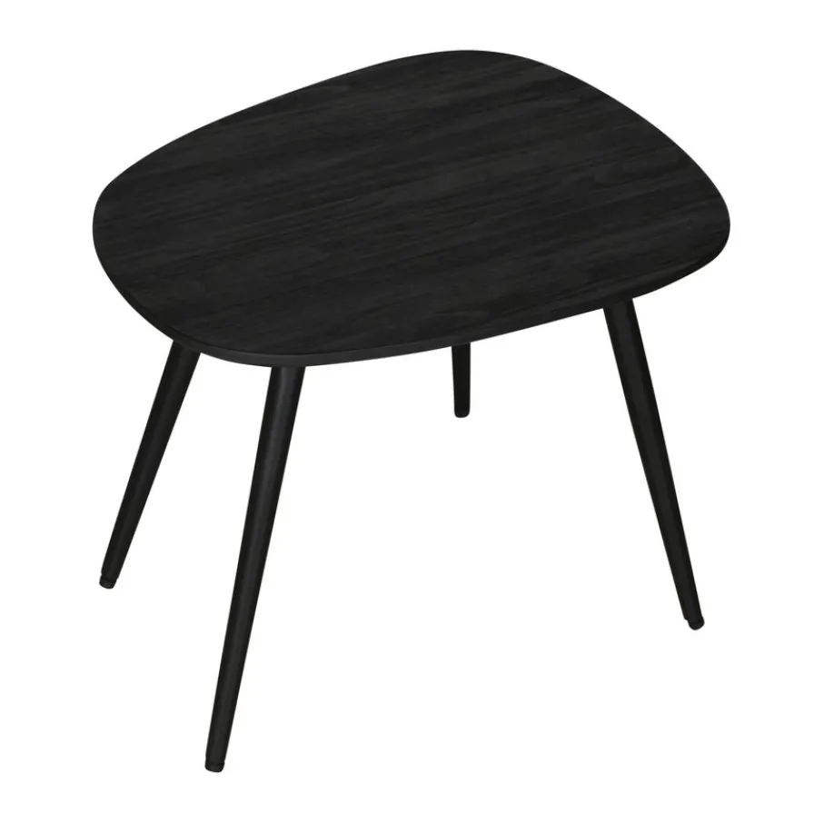 - Chique blikvanger: Het diepzwarte, gelakte blad van gerecycled teakhout, gecombineerd met strakke metalen poten, zorgt voor een moderne en luxe uitstraling.