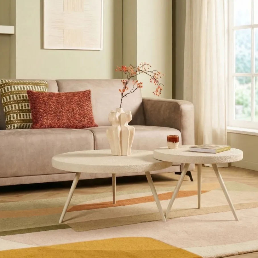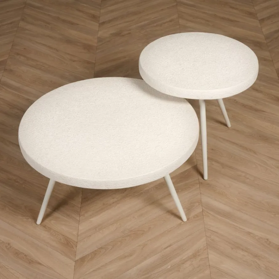 Met de Cordes salontafels kun je flexibel en modulair wonen. Als je ze bij elkaar houdt, dan is de set lekker royaal van formaat. Wanneer je ze los van elkaar gebruikt, dan creëer je op meerdere plekken ruimte voor hapjes, drankjes en wat leuke deco. Maar denk niet dat de Cordes salontafels alleen maar praktisch zijn: ze zijn ook bijzonder stijlvol! De ronde vorm en het mooie opgedikte blad met reliëf zorgen voor een eigentijdse look, die perfect past in diverse woonstijlen.