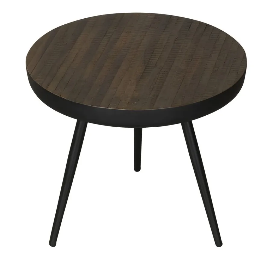 - Modern design met een robuuste touch: De ronde vorm en de robuuste look van het teakhout combineren perfect met de slanke, schuine zwarte metalen poten voor een eigentijdse en toch gezellige look.
