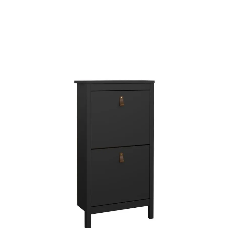 Schoenenkast Dallas heeft 2 klepdeuren en biedt plaats aan maximaal 8 paar schoenen.