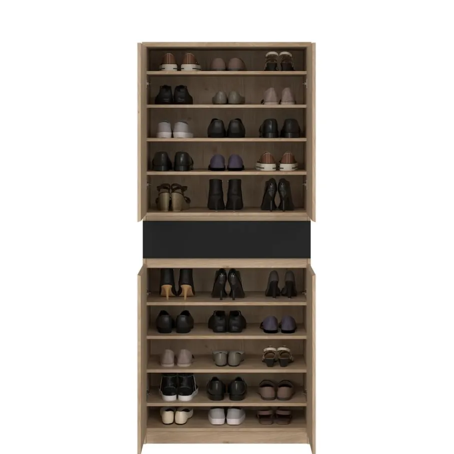 - Helemaal naar jouw hand! Dankzij de maar liefst acht planken, waarvan er zes verstelbaar zijn, deel je de kast precies zo in als jij wilt voor al je schoenen en spulletjes.