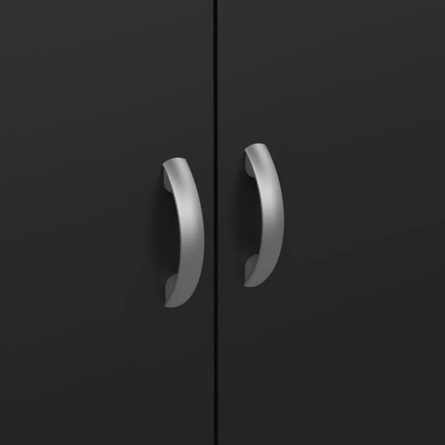 Deze variant van de Miami opbergkasten wordt geleverd inclusief vijf verstelbare planken voor opbergoplossingen op maat. Jij bepaalt zelf hoe je de kast indeelt. De deuren hebben een half ovale handgreep met een zilvergrijze metallook.
